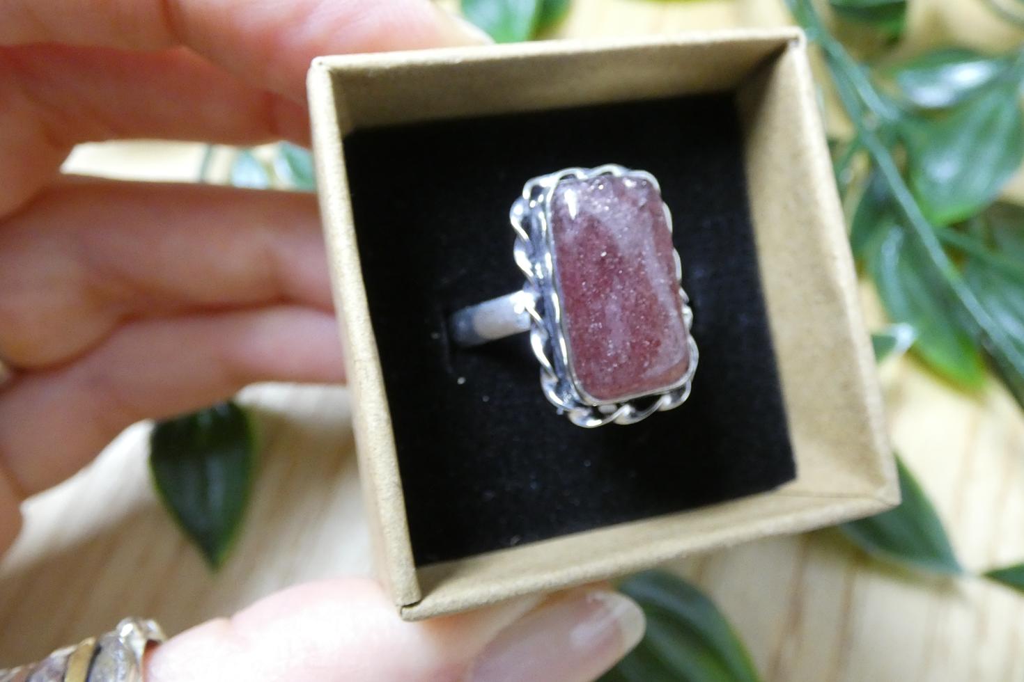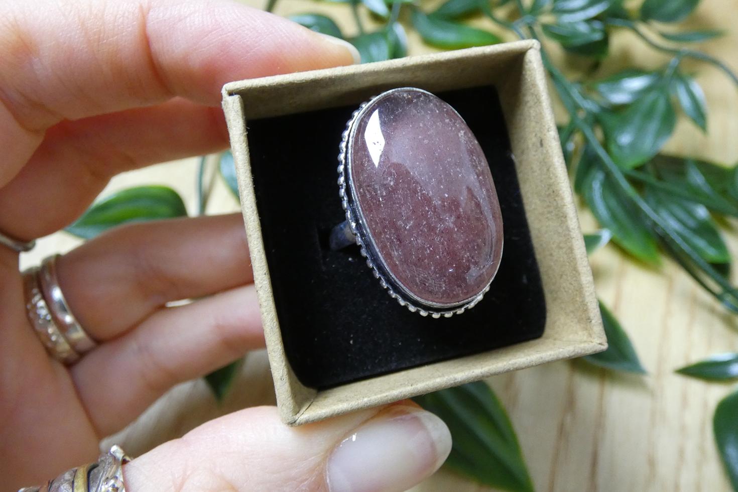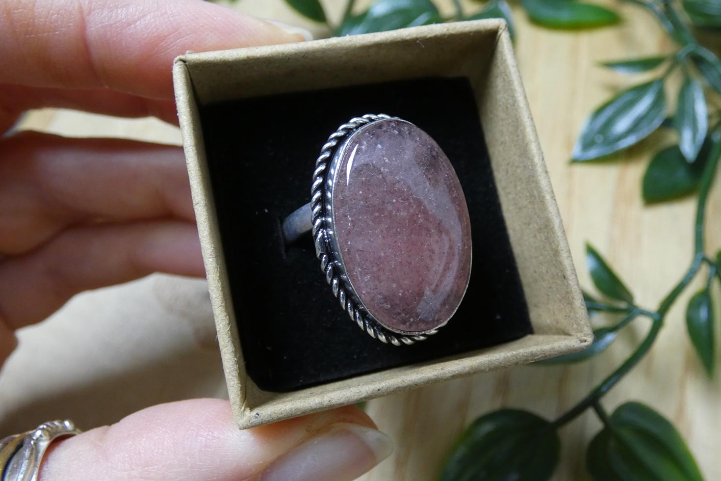 Materiali: Anello in argento 925 regolabile in stile etnico con quarzo fragola di qualità a superficie liscia - made in India.
