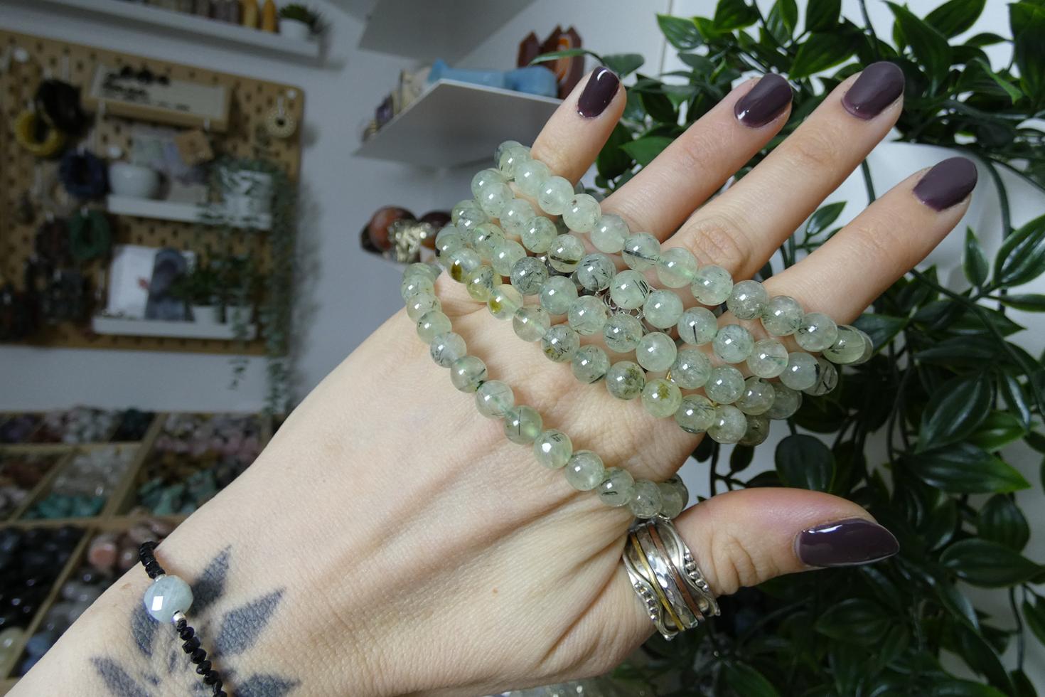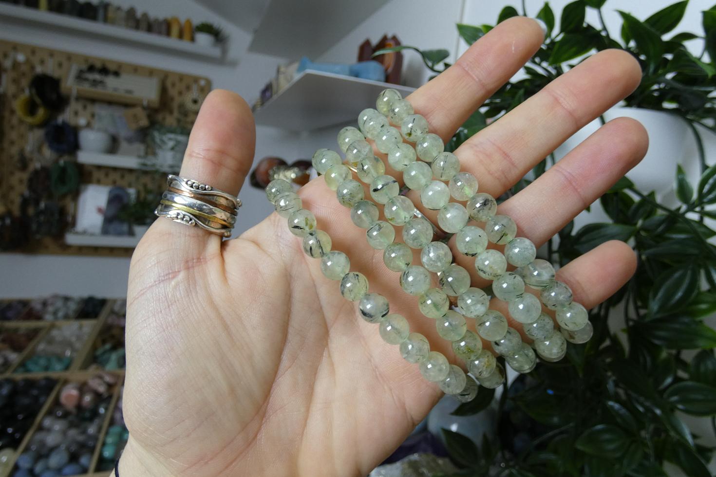 Descrizione e proprietà: La Prehnite è un minerale di colore verde chiaro che si forma nelle rocce ignee e metamorfiche grazie al processo idrotermale, ed è stata scoperta nel XVIII in Sudafrica dal colonnello Prehn da cui prende il nome. Fa riaffiorare immagini e ricordi traumatici rimossi per poter essere elaborati e superati. Ci aiuta a trovare un maggior equilibrio emotivo nei momenti di tensione e angoscia e una maggiore serenità, favorendo una visione positiva della vita. Allontana le energie negative, promuove le capacità di analisi, rendendo più ricettivi, attenti e permettendo di elaborare più velocemente le idee. Rinforza il carattere, la personalità e lo spirito guerriero, perché ci aiuta ad accettare le verità anche più scomode e ci spinge ad affrontare i problemi a viso aperto. E’ associata al 4° chakra (cuore) e viene utilizzata anche per superare le delusioni di tipo amoroso.