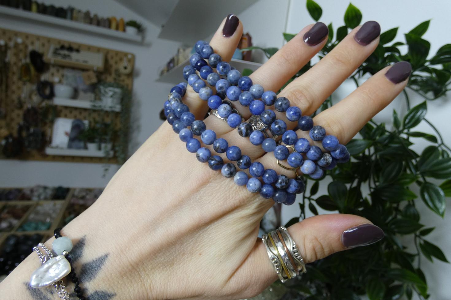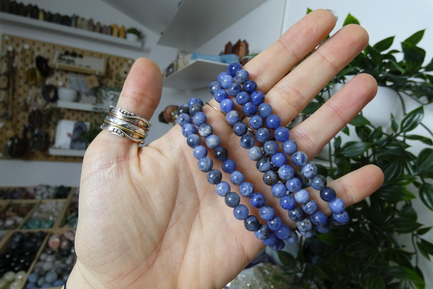 Descrizione e proprietà: La Sodalite sviluppa armonia, fiducia e forza di volontà. La profonda colorazione blu della pietra le conferisce un’energia calmante. Ha proprietà eccellenti per la comunicazione, soprattutto a livello del chakra della gola (5° chakra). Incentiva il pensiero razionale e intuitivo, a comunicare verbalmente i propri pensieri in modo calmo e rilassato, mantenendo una buona chiarezza dei concetti che si vogliono esprimere. Se si deve parlare in pubblico, questa gemma favorisce calma ed equilibrio, accrescendo l’autostima e allontanando gli attacchi di panico. È una pietra ottima per alleviare le nostre paure, fobie e sensi di colpa indotti da altri, risulta appropriata per qualunque cosa possa ostacolare la nostra crescita sana.