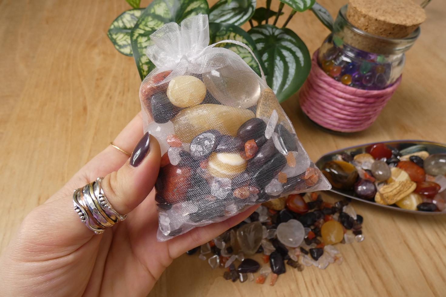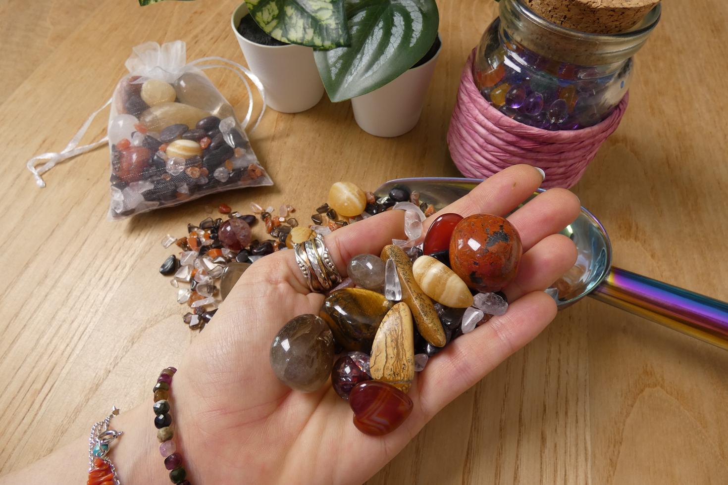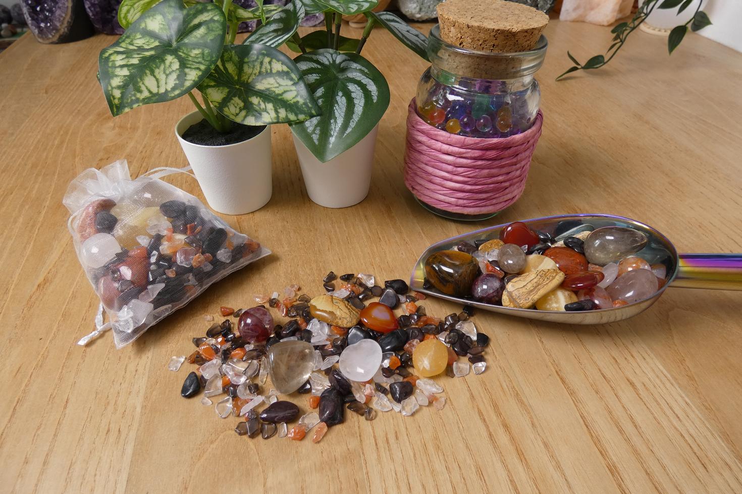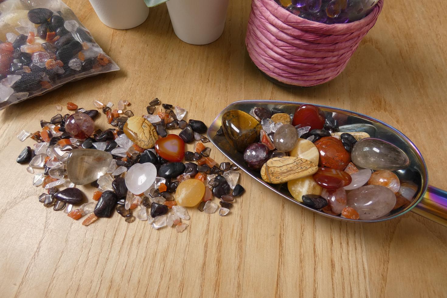 Descrizione e proprietà: Il Crystal Confetti è un mix di pietre selezionate ognuna delle quali ha specifiche proprietà associate al tema scelto, e chi ordina lo scoop potrà ricevere tutte le diverse tipologie di cristalli con un unico acquisto.