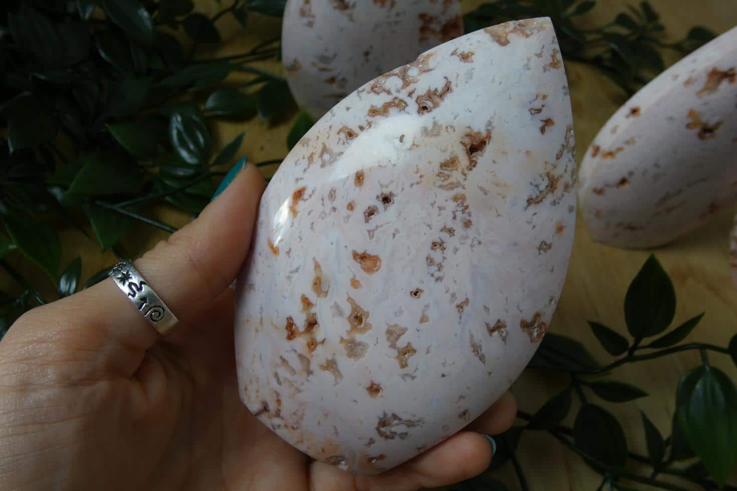Descrizione e proprietà: L’Agata Bianca “White Plume” è una varietà di agata capace di stimolare l'equilibrio tra Yin e Yang, acuire la concentrazione e il pensiero logico, le capacità analitiche e l’introspezione, donare sicurezza, stabilità e realismo. Aiuta a trovare dentro di sé la risposta alle proprie domande, facilita l’analisi critica delle proprie esperienze. Allinea i corpi fisici all’etereo e ne rafforza i legami. E’ un ottimo amuleto per la protezione dalle energie negative, specialmente se unito ad una pietra nera. Lenisce e calma, guarisce la rabbia o la tensione interiore. Purifica e stabilizza l’aura, eliminando e trasformando la negatività. L’Agata di colore bianco viene associata al Settimo chakra ed è il colore che riesce al meglio promuovere lo sviluppo spirituale.