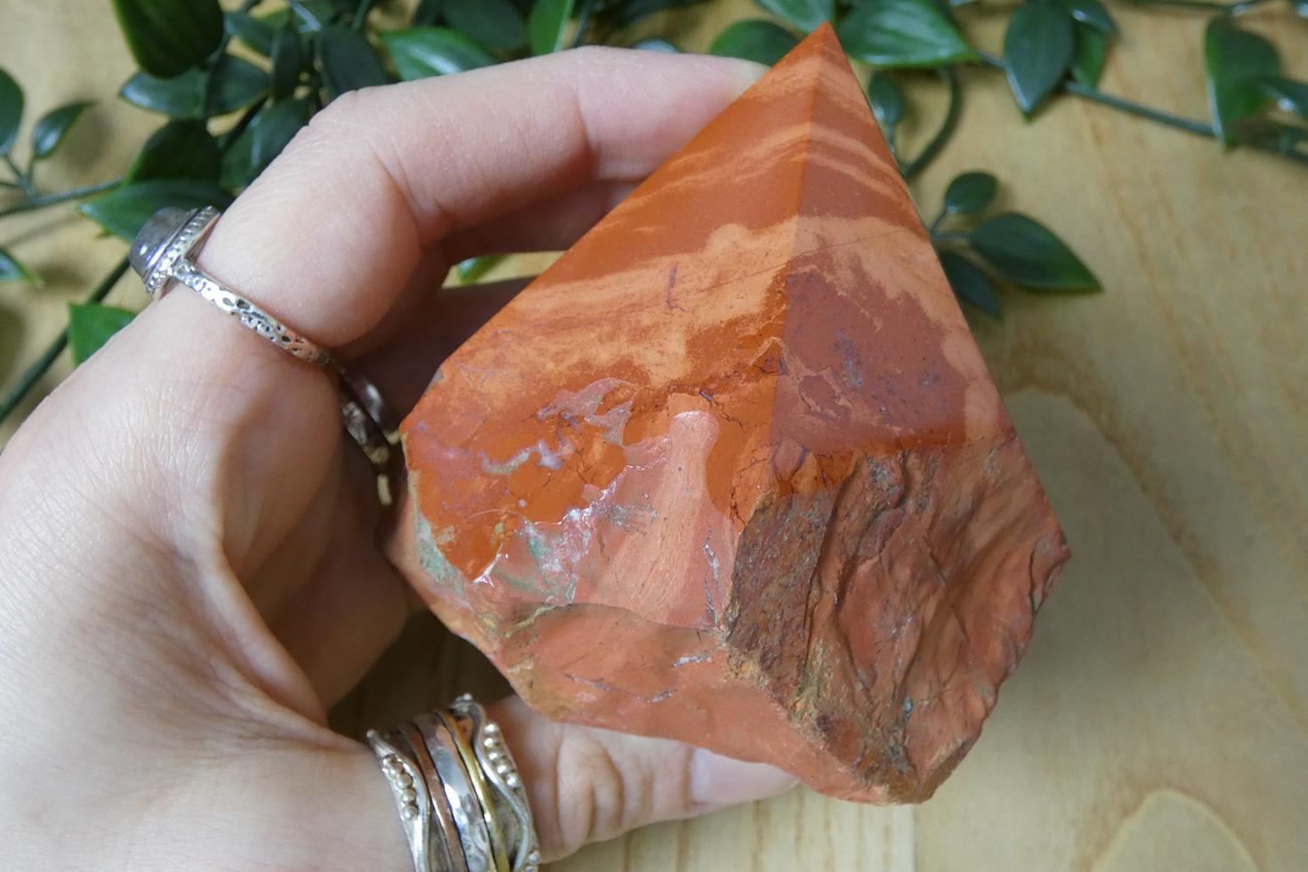 Il diaspro rosso lavora direttamente sul 1° chakra (radice) e viene usato anche per effettuare la pulizia energetica dell’aura. È considerata la pietra che riaccende la passione e dona creatività.