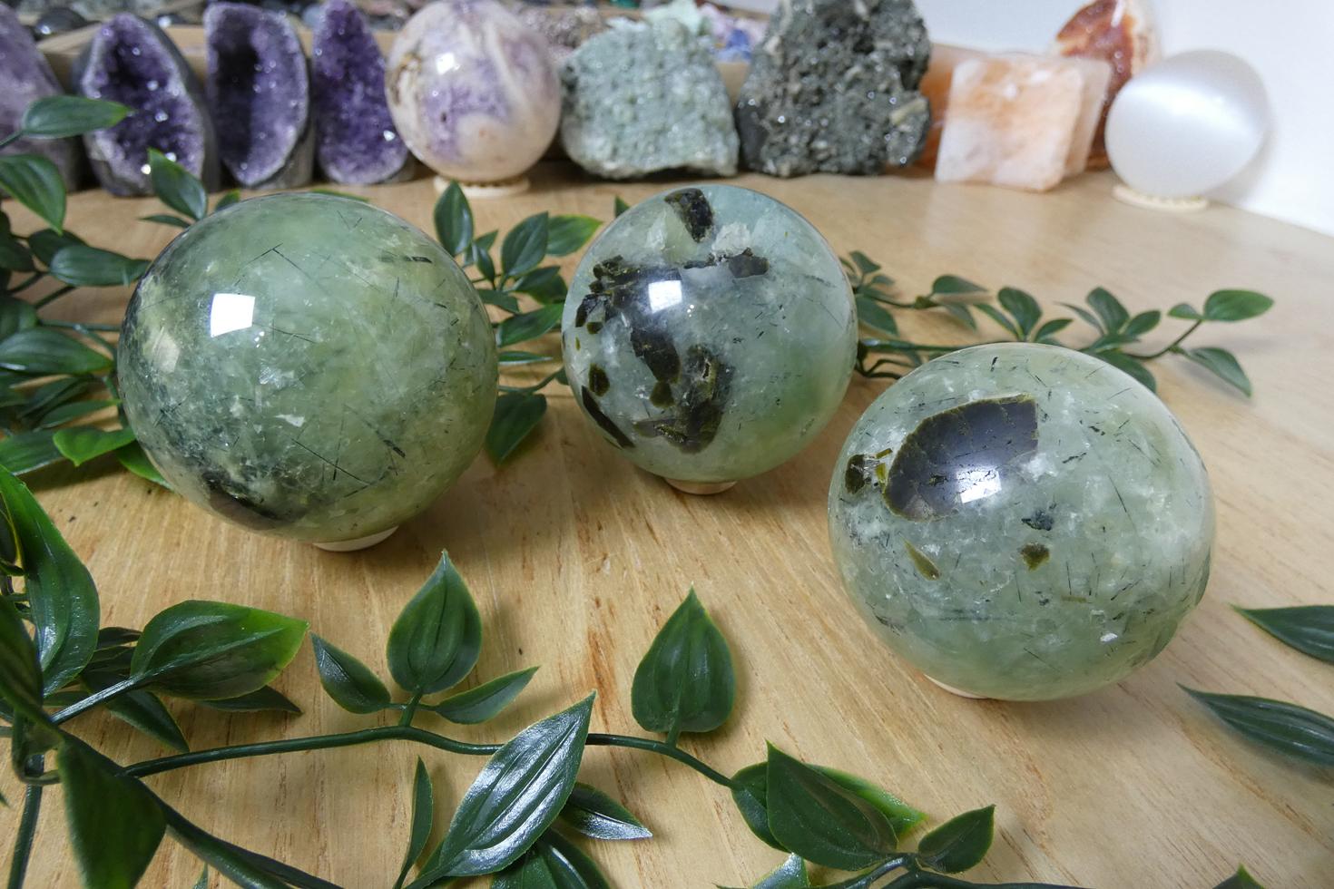 Descrizione e proprietà: La Prehnite è un minerale di colore verde chiaro che si forma nelle rocce ignee e metamorfiche grazie al processo idrotermale, ed è stata scoperta nel XVIII in Sudafrica dal colonnello Prehn da cui prende il nome. Fa riaffiorare immagini e ricordi traumatici rimossi per poter essere elaborati e superati. Ci aiuta a trovare un maggior equilibrio emotivo nei momenti di tensione e angoscia e una maggiore serenità, favorendo una visione positiva della vita. Allontana le energie negative, promuove le capacità di analisi, rendendo più ricettivi, attenti e permettendo di elaborare più velocemente le idee. Rinforza il carattere, la personalità e lo spirito guerriero, perché ci aiuta ad accettare le verità anche più scomode e ci spinge ad affrontare i problemi a viso aperto.